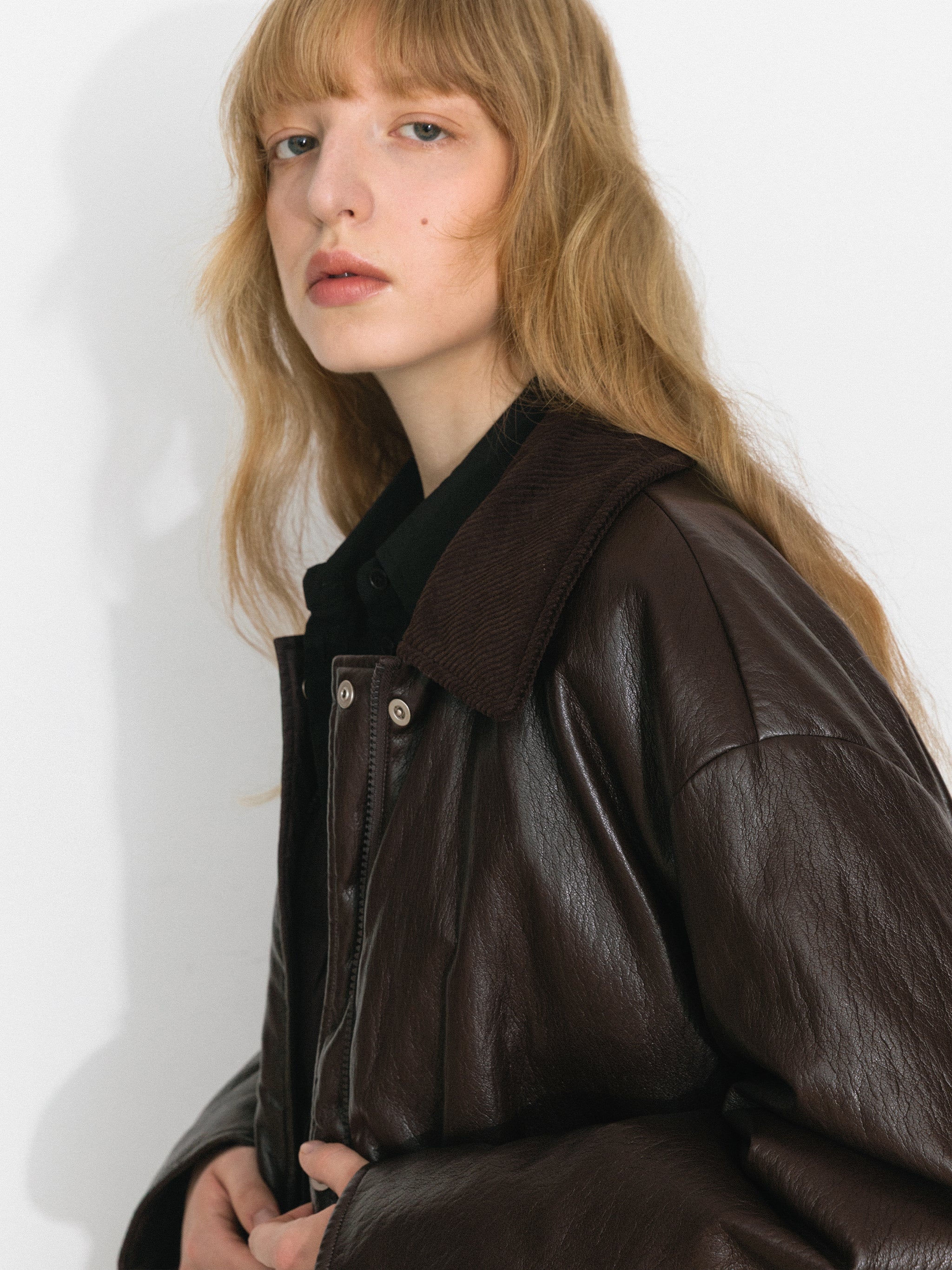 Vintage corduroy collar meets reversible design in this short down jacket. Magnetic snaps ensure easy wear, offering a stylish, versatile, and practical outerwear option.