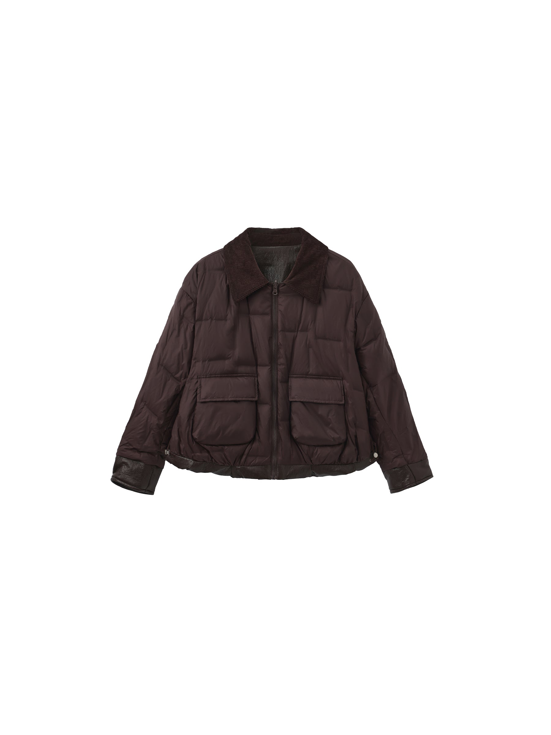 Vintage corduroy collar meets reversible design in this short down jacket. Magnetic snaps ensure easy wear, offering a stylish, versatile, and practical outerwear option.