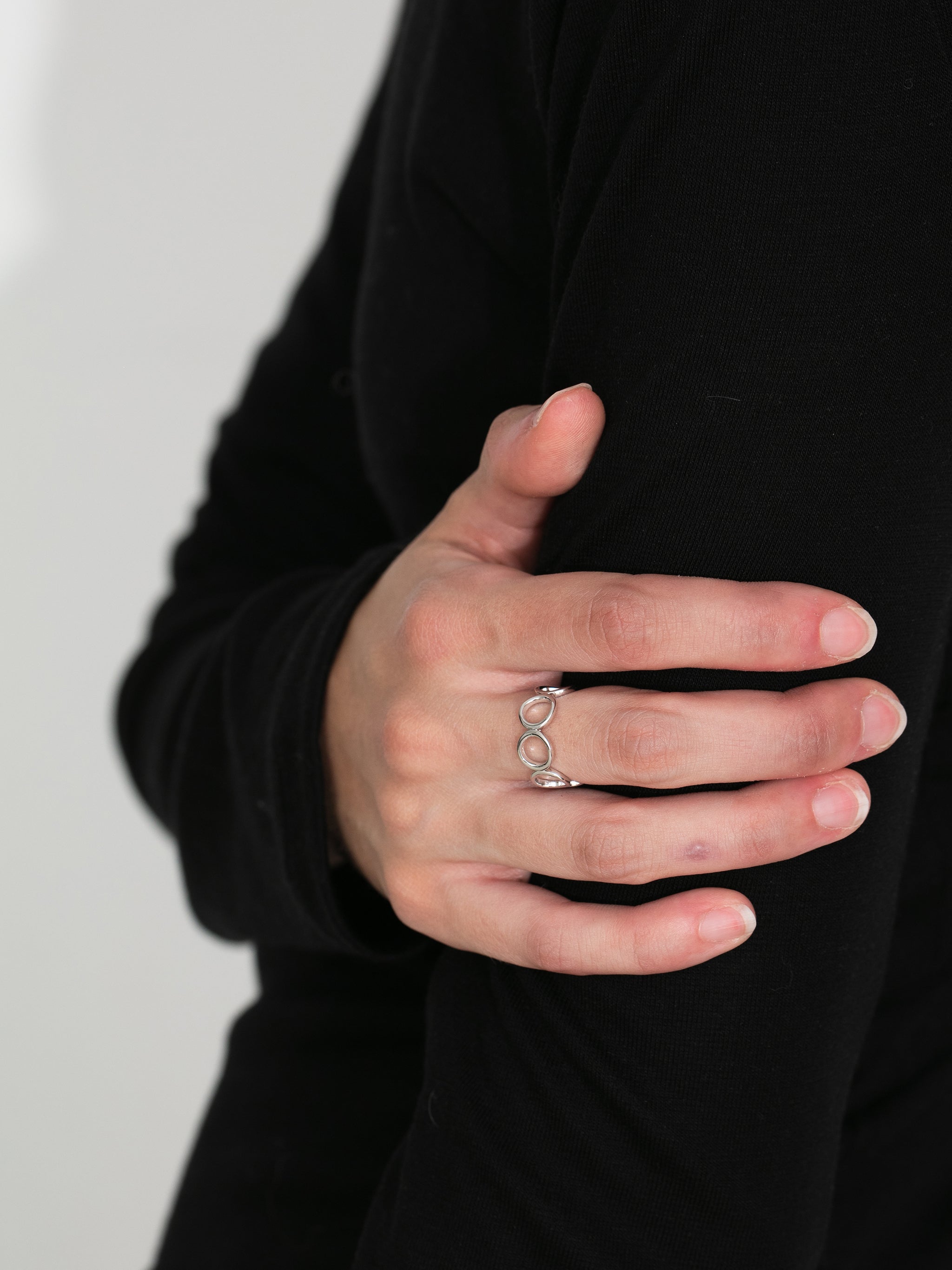 Minimalist open circle ring in silver. This open-ended ring features a hollow circular design, offering a modern and understated look that’s versatile for everyday styling. The ring has an inner diameter of 1.8 cm. It is crafted from Sterling Silver. Product Code: CAJ0052