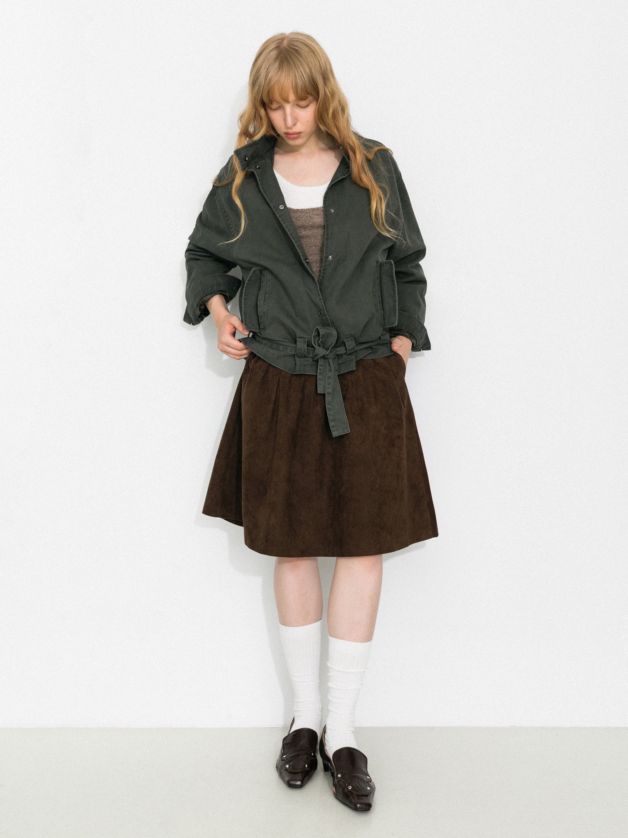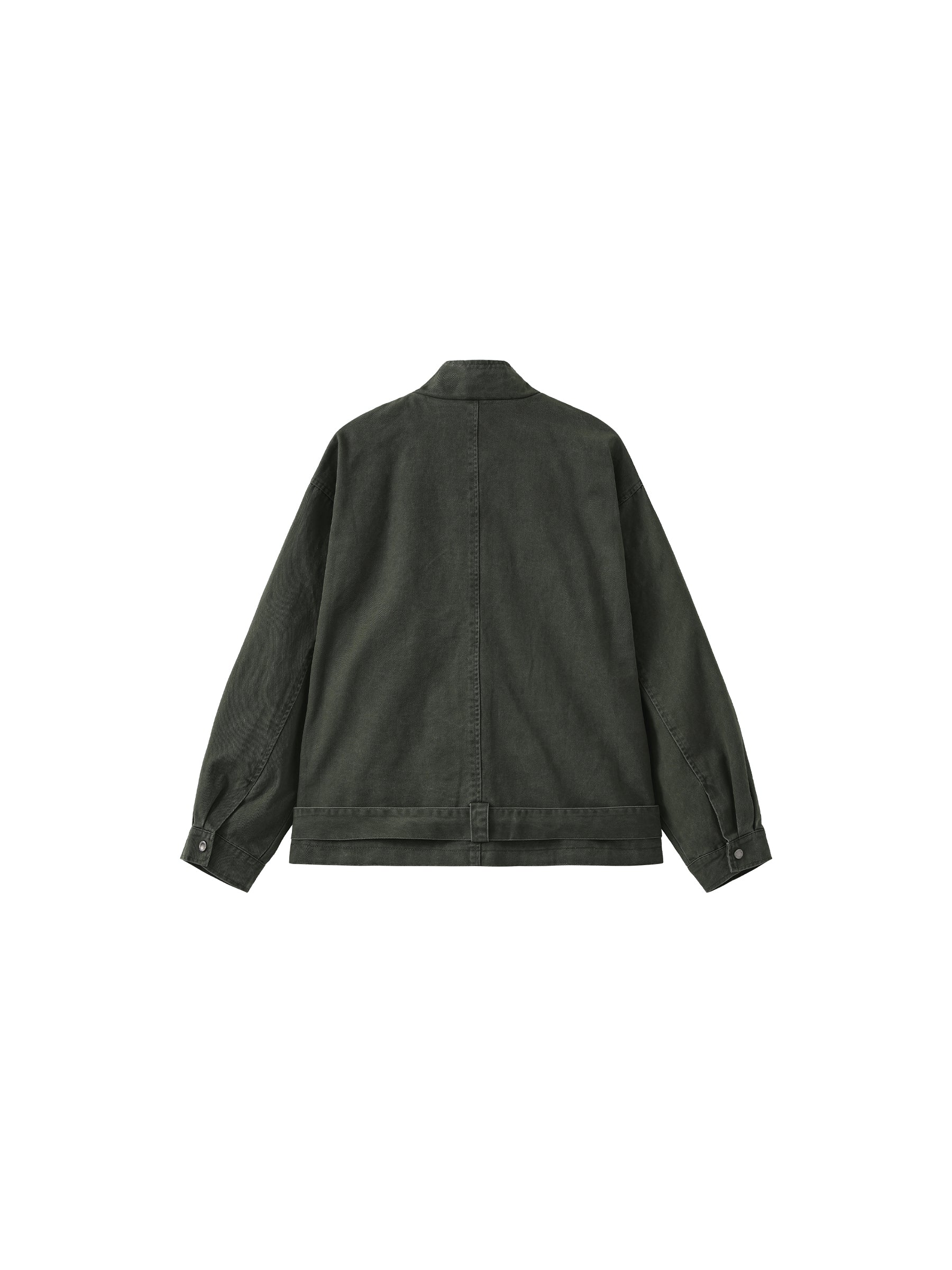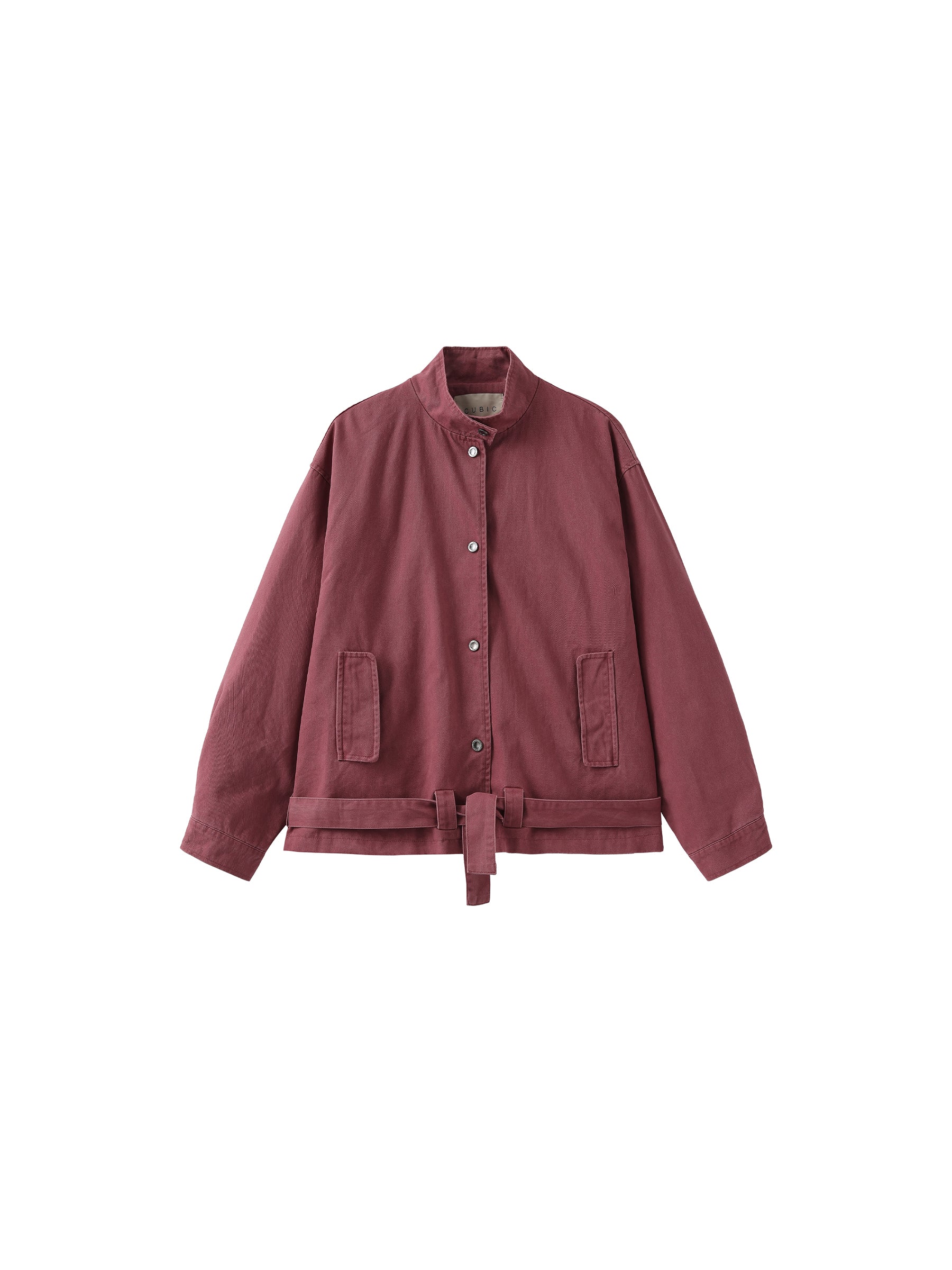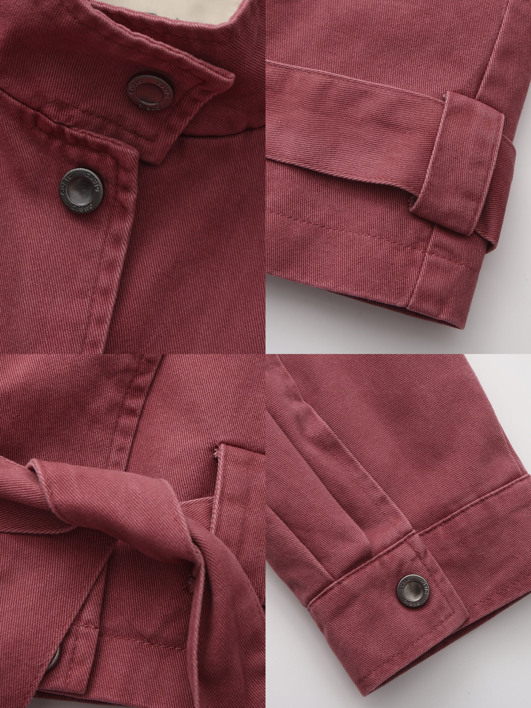 Crafted in a cropped straight-cut silhouette, this jacket blends vintage utility details with a casual urban aesthetic. A modern take on retro-inspired streetwear, it features a stand collar, low waist belt, and snap-button closures for a functional yet stylish finish. The fabric composition: 100% Cotton; Lining: 100% Polyester. Product Code: COBEC6013