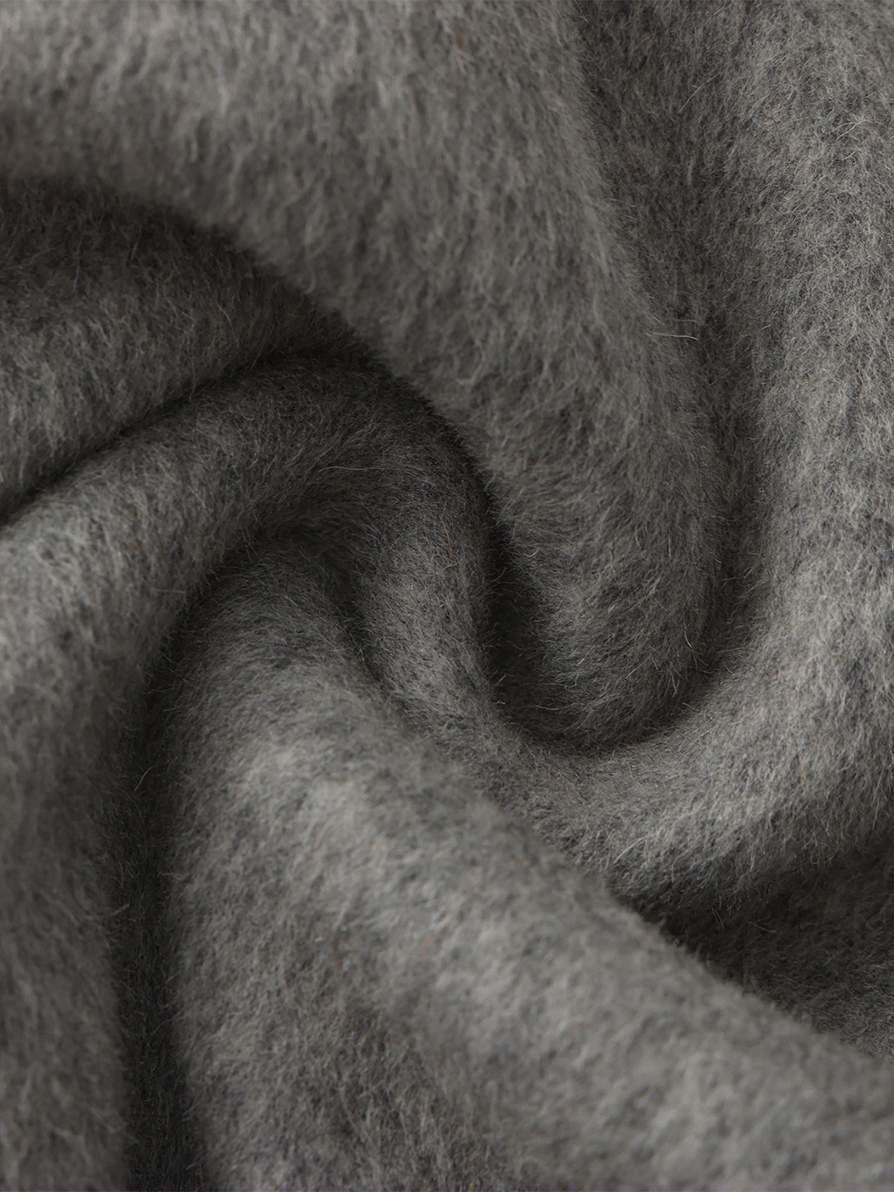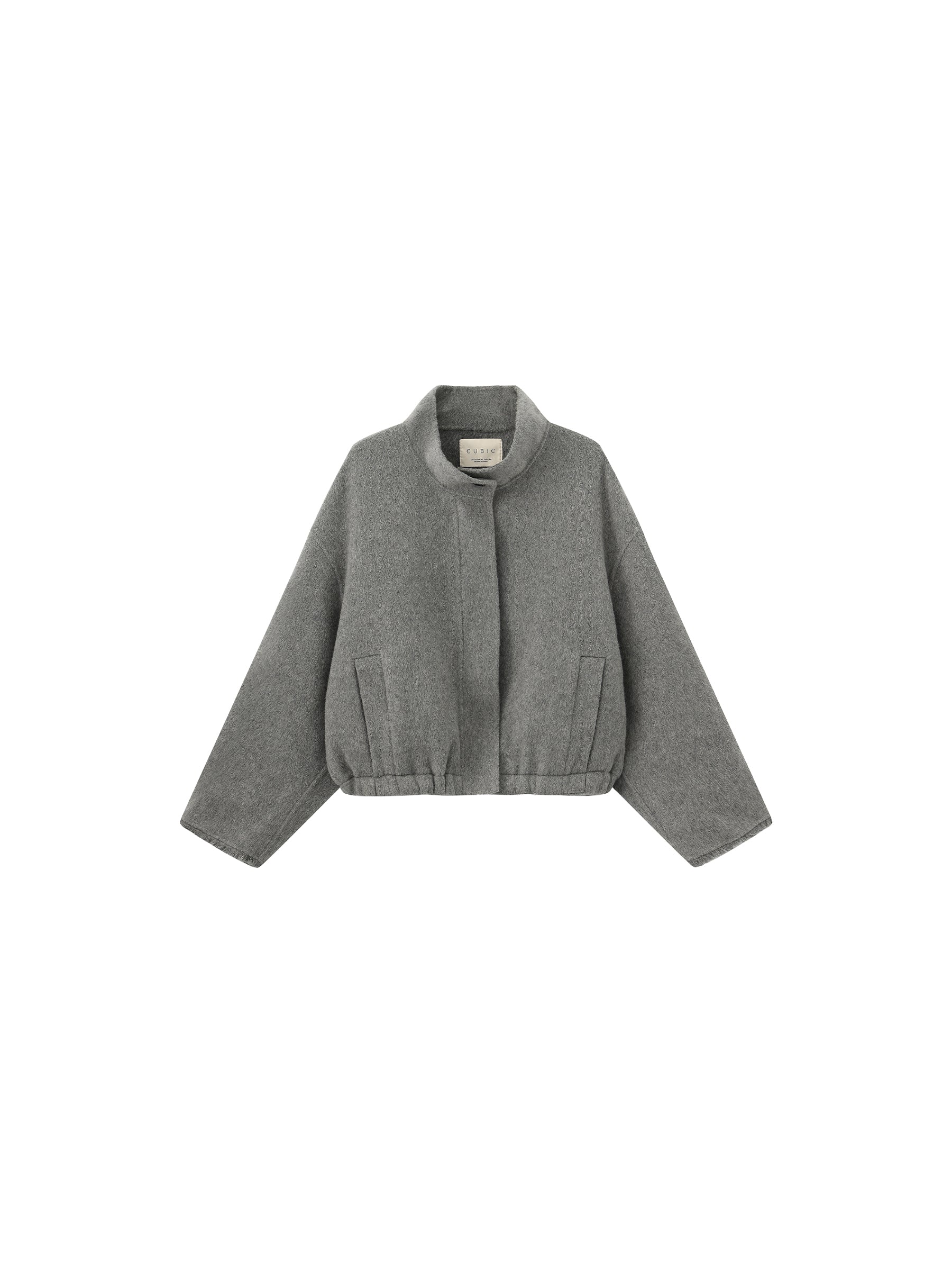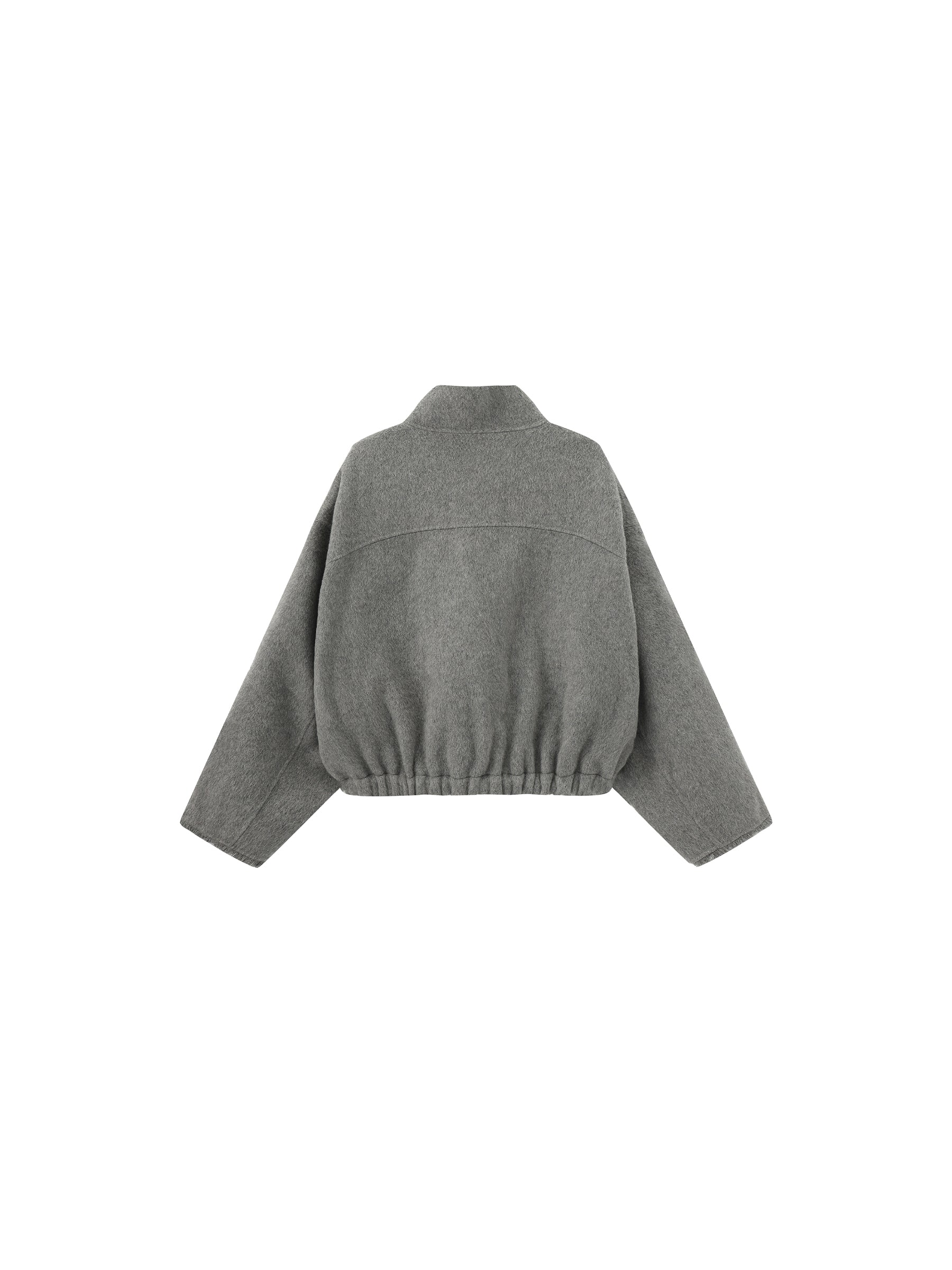 Cocoon Zip-Up Jacket with Raw Edge Cuffs. Relaxed cocoon silhouette with a sleek stand-up collar, smooth zipper, and practical pockets. Raw edge cuffs add a vintage touch. Versatile, flattering, and easy to wear for daily outings, work, or casual gatherings.