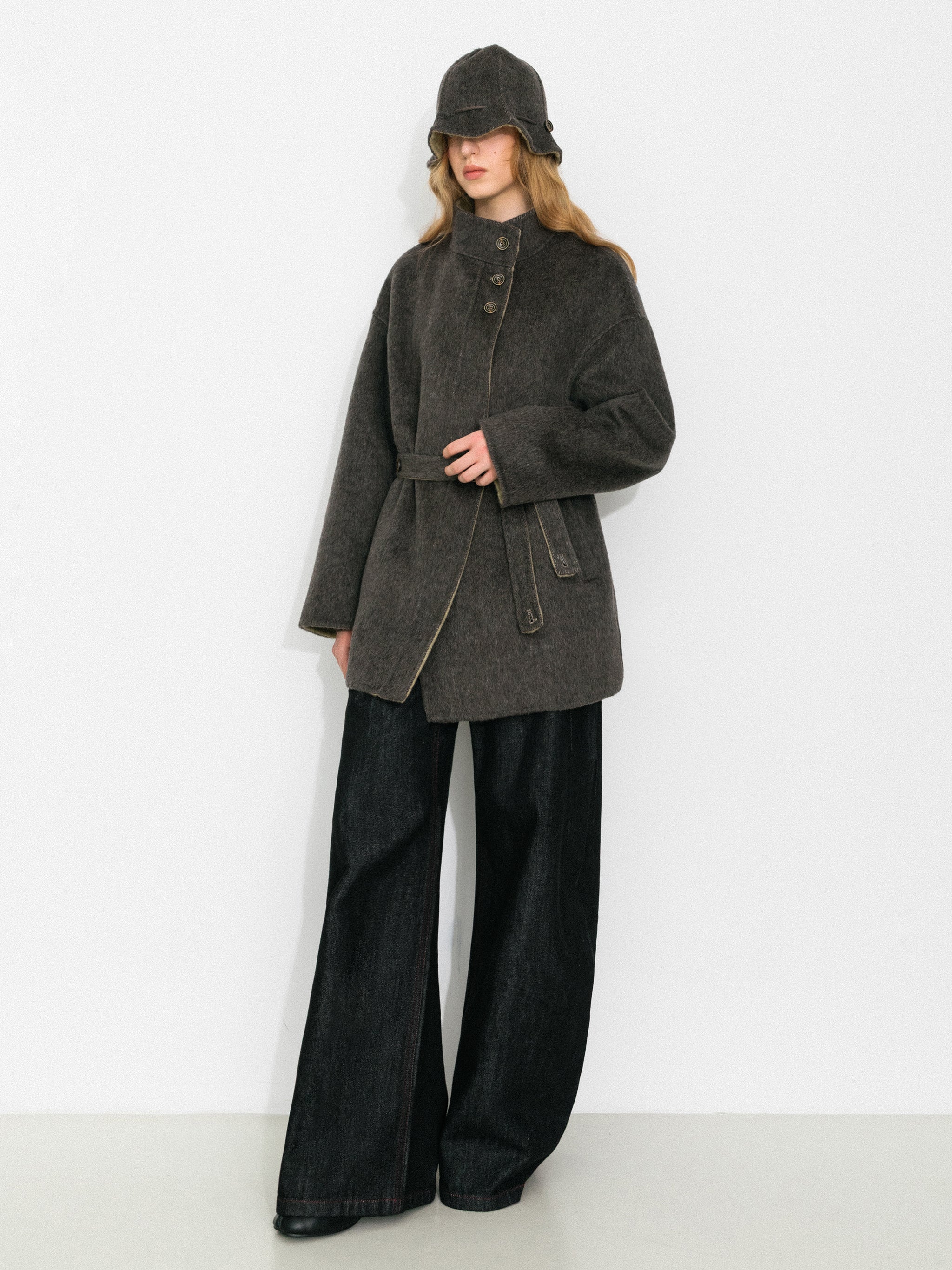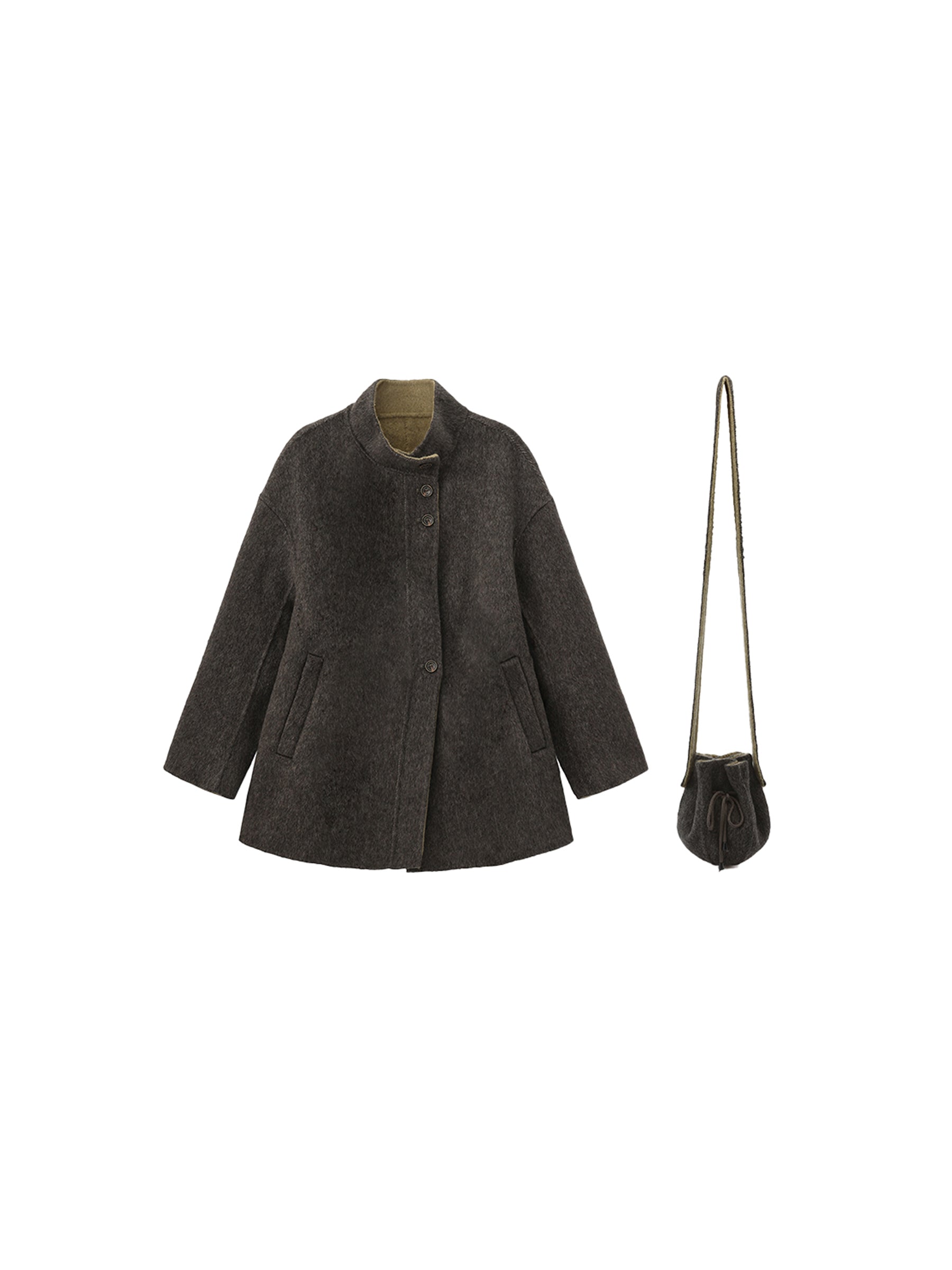 A versatile wool-blend coat offering two distinct looks in one. Designed with a detachable pouch that can be worn as a belt bag or transformed into a hood, it brings creative multi-way styling and everyday practicality to your winter wardrobe.