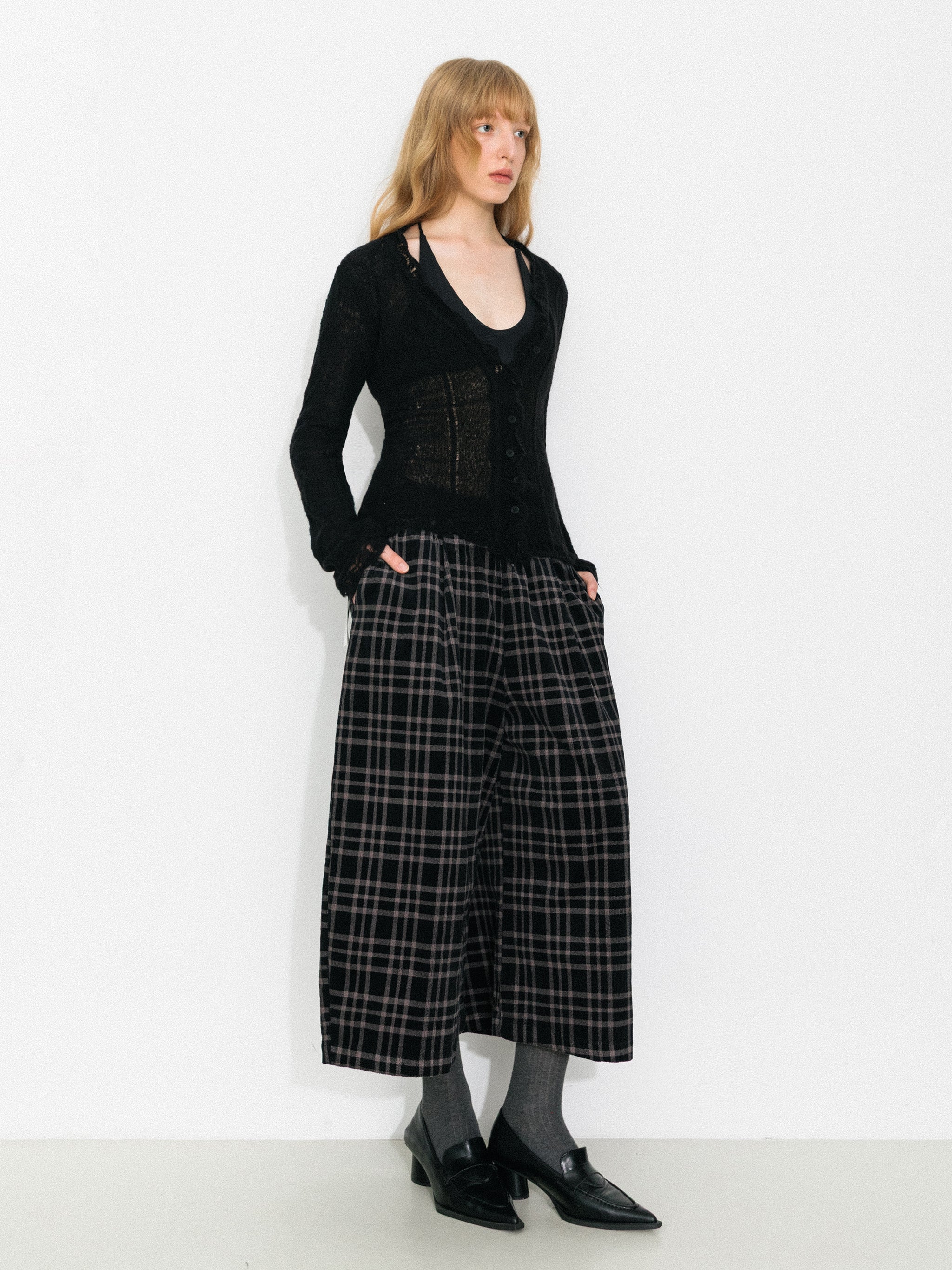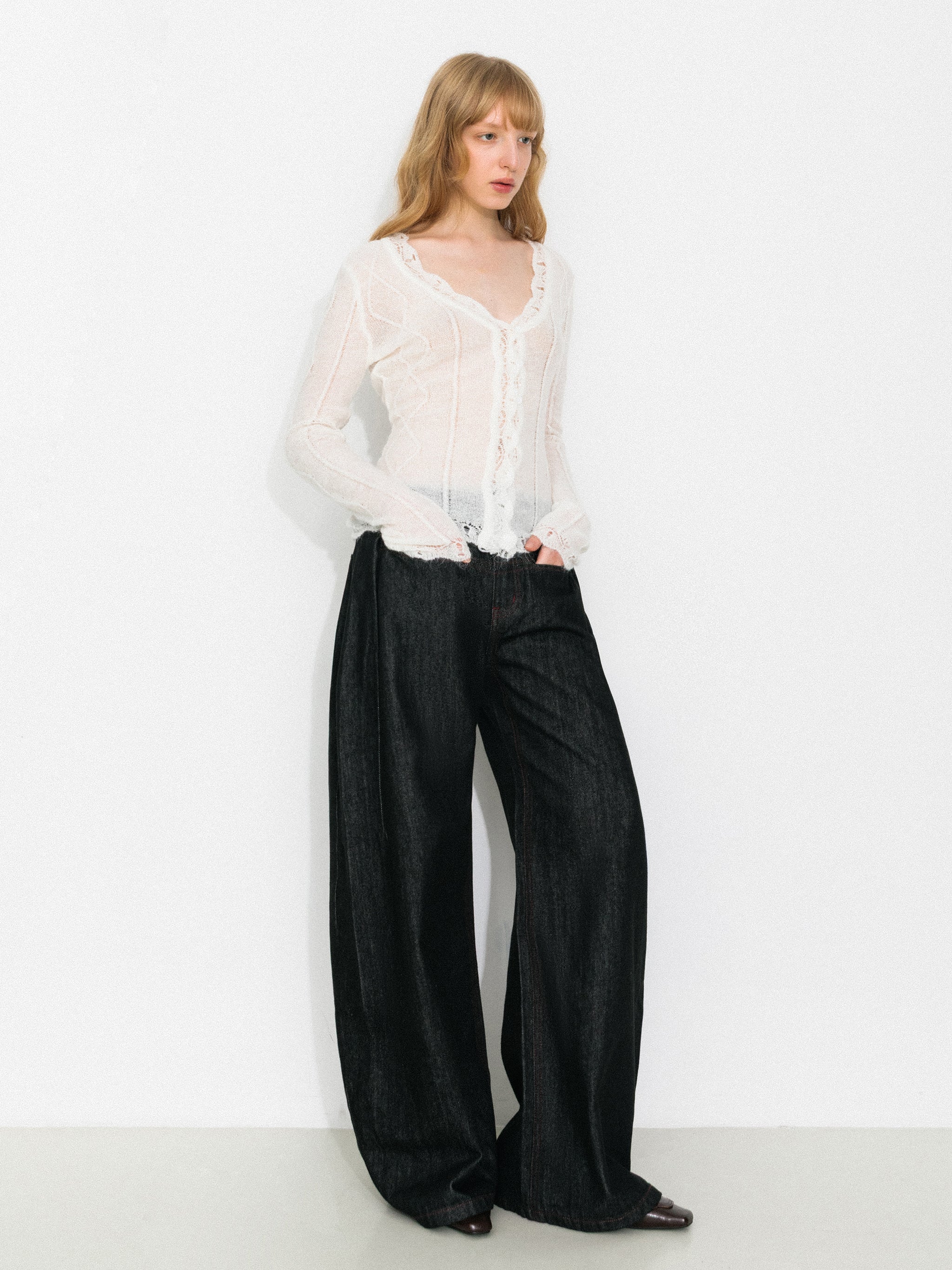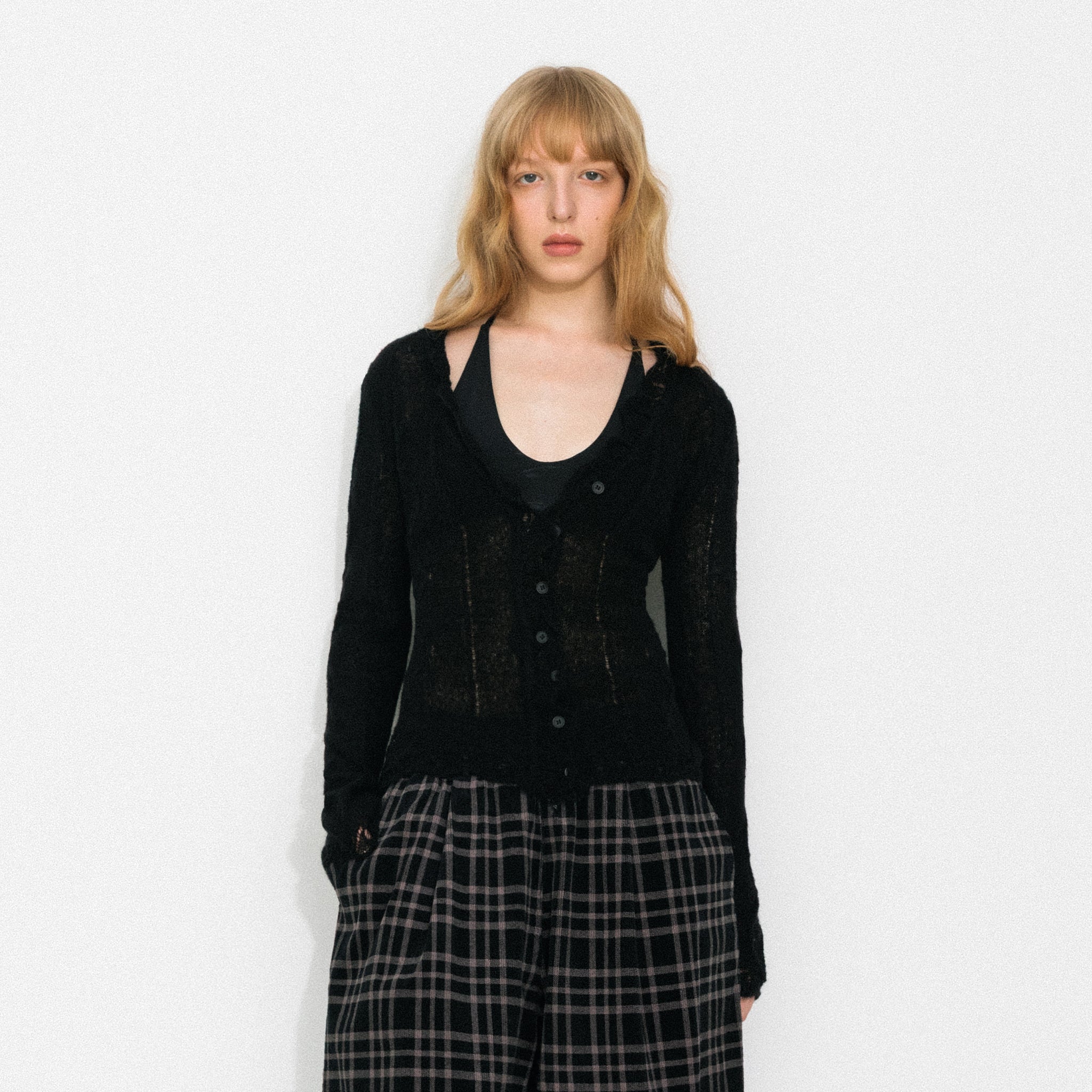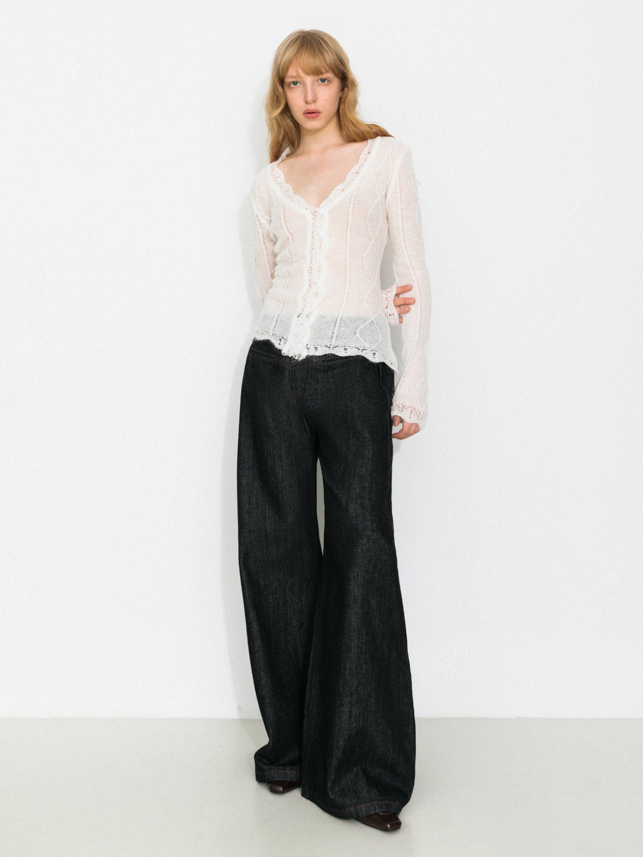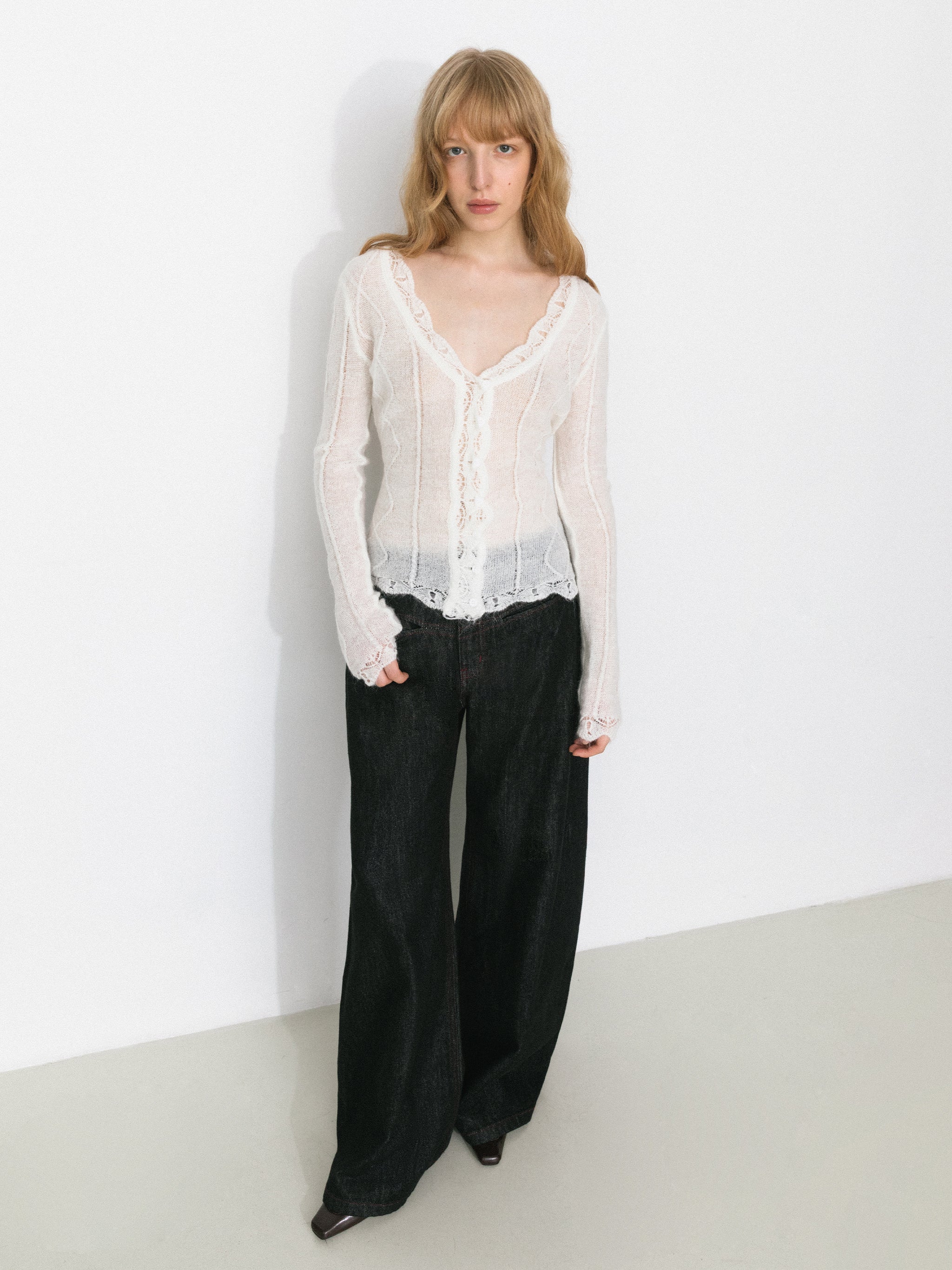 The Vintage V-Neck Slim Fit Cardigan features delicate openwork detailing at the neckline, adding breathability and a refined touch that breaks away from a traditional, plain collar. The V-neck design beautifully elongates the neck and enhances the overall silhouette with a subtle, flattering effect.